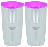 Vino2Go 2 Pack of Double Wall Clear Acrylic Tumbler with Pink Lids